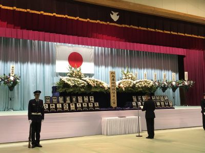 宮城県隊友会(会長・佐藤次郎)は、10月31日、会長及び東松島支部長等と「令和6年度松島基地殉職隊員追悼行事」に参加した。前段の体育館での追悼式は、ご遺族、東松島市長、自衛隊協力団体の長等が参加するなか、執行者の松島基地司令渡部琢也空将補の34柱(操縦訓練、最近では、東日本大震災出頭時等でお亡くなりになられた隊員。)の御霊に対する涙ながらの追悼の辞、参加者の献花、儀じょう隊拝礼等、厳粛かつ整斉と実施された。その後秋晴れの中司令部庁舎横に所在する殉職隊員慰霊碑前で弔銃及び追悼飛行が行われ食堂での追悼会食の後解散した。