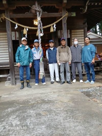 | 多賀城支部大代分会 神社境内の清掃奉仕 多賀城支部大代分会(分会長・高橋秀秋)は、10月25日、分会長以下3名で柏木神社総代会と共に柏木神社境内の清掃奉仕活動を行った。 この神社の境内には、本殿とその隣に護国神社の社殿、慰霊碑(大東亜戦争英霊69柱が祀られている)が建てられており、地元の鎮守様としてお参りされている。本活動は、毎年秋に行われる例大祭の準備として行われており、少人数ではあるが隊友会が貴重な戦力となっている。 神社関係者から「お陰できれいな状態で参拝客を迎えることができます。」とおおいに感謝され清々しい気持ちで作業を終了することができた。今後も地域への貢献活動を続けていきたいと考えている。 (大代分会長 橋秀秋) |